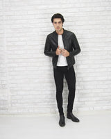 Happy Gentleman B101 - Moška črna motoristična jakna iz pravega usnja - ozek kroj